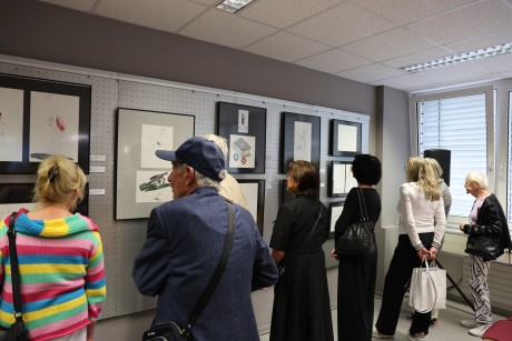 Gut besuchte Ausstellungeseröffnung in der Bibliothek am Puschkinplatz40 Freundinnen und Freunde der Kunst hatten Gelegenheit für gute GesprächeSpaß und Nachdenklichkeit waren die hauptsächlichen Geisteszustände der Gäste bei angeregter Unterhaltung. Man fragte sich schon bei einigen Cartoons, woher hat das Eb vor mehr als 20 Jahren schon gewußt. Künstler wie Eb haben kein zweites Gesicht und können auch nicht hellsehen. Sie sind nur in der Lage, die Gegenwart tiefgründiger zu erkennen, sodass es uns so vorkommt, als hätte Eb das vor 20 Jahren schon vorausgesehen. Die darauf beruhende künstlerische Voraussicht gibt ihm lange nach seinem Tod Recht. Eb wäre nicht Eb, wenn er nicht den Hintergedanken im Bezug zum Heute versteckt hätte. Unser Staat und seine Körperschaften, die in dessen Schlag- oder Halbschatten unkontrolliert vor sich hin wursteln und die uns Bürger als unmündige Angestellte betrachten. Das kannten unsere Vorfahren auch. zurück zurück |