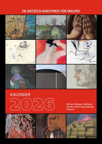 Kunstfreunde geben Kalender 2026 herausKunstpreiskalender 2026 ab sofort erhältlichIm Jahr 2008 begründete der Verleger Erhard Lemm (1938-2024) den Eb-Dietzsch-Kunstpreis für Malerei zu Ehren seines Freundes und Weggefährten Eberhard Dietzsch (1938-2006). Der Preis wird alle 2 Jahre ausgeschrieben. Bis 2018 organisierte der Verlag Erhard Lemm mit der Volksbank Gera die Veranstaltung und seit 2022 nach dem coronabedingten Ausfall 2020 obliegt es dem Eberhard (Eb) Dietzsch-Kunstfreunde e.V. gemeinsam mit der Sparkasse Gera-Greiz. 2012 und 2024 gab es drei gleichrangige Hauptpreisträger, sodass es nahe lag, aus den 12 Werken der Sieger einen Jahreskalender zu gestalten. Der Kunstpreis lebt von seinem kulturellen Miteinander – von Ateliers, Ausstellungen, Gesprächen und Begegnungen. Mit diesem Kalender möchten wir Ihnen einen Einblick in diese kreative Vielfalt geben und gleichzeitig zum Innehalten, Betrachten und Nachdenken einladen. Dieser Kalender ist mehr als nur ein Begleiter durch die Monate – er ist eine Würdigung des künstlerischen Schaffens, das unsere Gemeinschaft inspiriert, verbindet und bereichert. In den ausgewählten Werken spiegeln sich nicht nur Techniken und Motive, sondern auch die persönlichen Handschriften, Leidenschaft und Ausdruckskraft unserer Künstlerinnen und Künstler wider. » 2026 Eb-Dietzsch-Kunstpreiskalender " Format 21 x 29,7, mit den Thüringer Schulferien und Geraer Veranstaltungsterminen, ISBN 978-3-9824541-9-1 8 Euro (+2 Euro Versandkosten), Abholung möglich. Bestellung über eb.dietzsch.kunstfreunde@gmx.de ![]() zurück zurück |